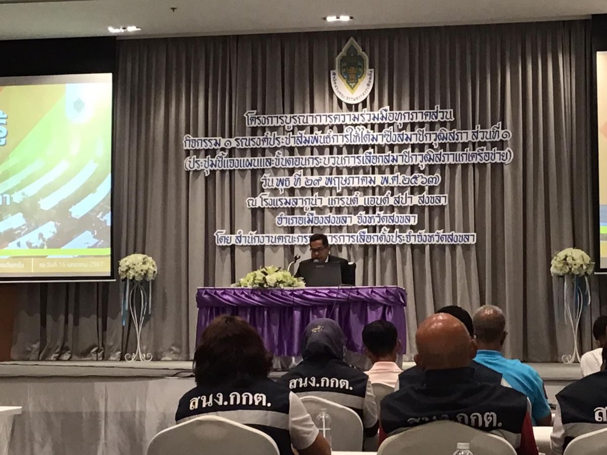 วันที่ 29 พฤษภาคม 2567 นางสาวศรัญญา จินตุลา ผู้อำนวยการศูนย์ส่งเสริมการเรียนรู้ระดับอำเภอสทิงพระ มอบหมายให้ ว่าที่ร้อยตรีอาลียะ วาเตะ ครู กศน.ตำบลคลองรี และ นางสาววันดี หมานระเด็น ครู กศน.ตำบลท่าหิน เข้าร่วมประชุมชี้แจงแผนและขั้นตอนกระบวนการเลือก สว.แก่เครือข่าย ประกอบด้วย 1. นายพิภพ นพรัตน์ ประธานกรรมการ ศส.ปชตตำบลสนามชัย 2. นางกุศลิน ปานรังศรี ประธานกรรมการ ศส.ปชตตำบล จะทิ้งพระ 3. นางเรณู เที่ยงแก้ว ประธานกรรมการ ศส.ปชตตำบล บ่อดาน 4. นายราชัน ไชยมณี กรรมการ ศส.ปชตตำบลกระดังงา เพื่อปฏิบัติหน้าที่ช่วยเหลือและสังเกตการณ์การเลือกสมาชิกวุฒิสภาระดับอำเภอ ณ โรงแรม ลากูน่า แกรนด์แอนด์ สปา สงขลา ตำบลพะวง อำเภอเมืองสงขลา จังหวัดสงขลา