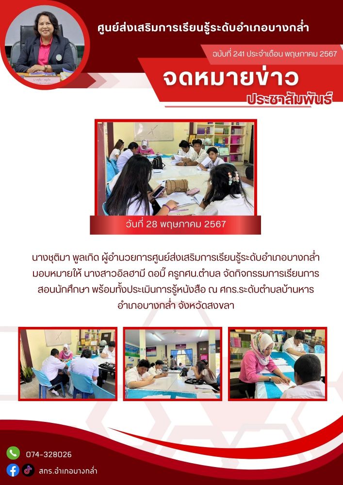 กิจกรรมการเรียนการสอนนักศึกษา ศกร.ระดับตำบลบ้านหาร พร้อมทั้งประเมินการรู้หนังสือ