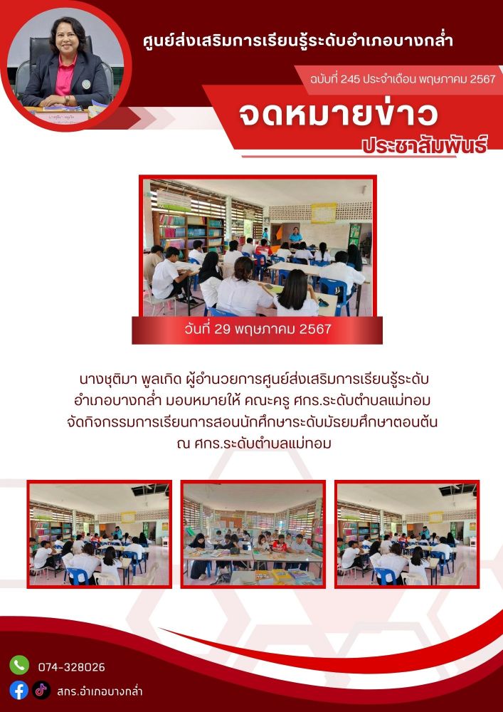 กิจกรรมการเรียนการสอนนักศึกษาระดับมัธยมศึกษาตอนต้น ณ ศกร.ระดับตำบลแม่ทอม