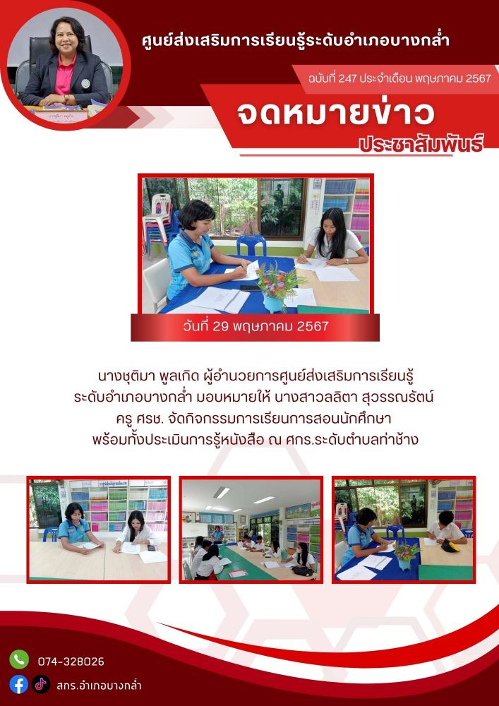 กิจกรรมการเรียนการสอนนักศึกษา พร้อมทั้งประเมินการรู้หนังสือ ณ ศกร.ระดับตำบลท่าช้าง