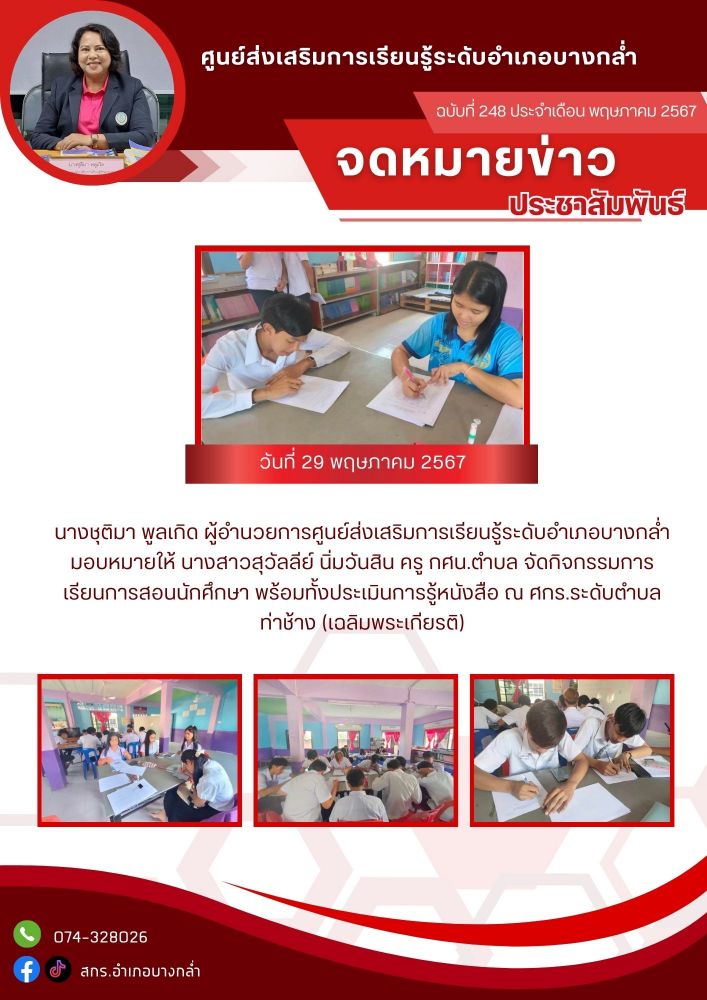 กิจกรรมการเรียนการสอนนักศึกษา พร้อมทั้งประเมินการรู้หนังสือ ณ ศกร.ระดับตำบลท่าช้าง (เฉลิมพระเกียรติ)