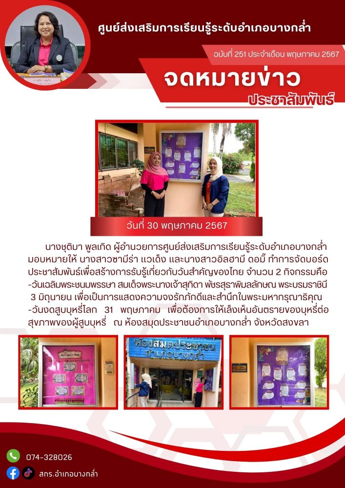 จัดบอร์ดประชาสัมพันธ์เพื่อสร้างการรับรู้เกี่ยวกับวันสำคัญของไทย