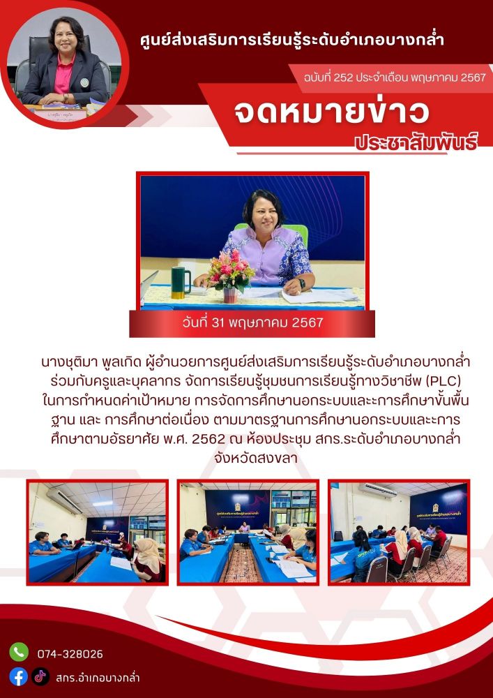 เข้าร่วมโครงการประชุมเชิงปฏิบัติการการดำเนินงานพัฒนาระบบการประกันคุณภาพภายในและนำมาตรฐานการศึกษาตามที่กระทรวงศึกษาธิการประกาศกำหนดไปใช้ในการประกันคุณภาพภายในสถานศึกษา สังกัดสำนักงานส่งเสริมการเรียนรู้ประจำจังหวัดสงขลา 6 / ต.ค. / 2568