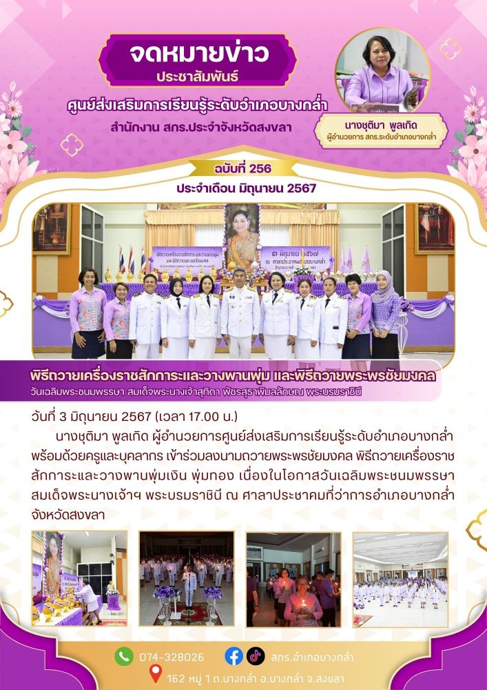 เข้าร่วมกิจกรรมเคารพธงชาติและร้องเพลงชาติไทย เนื่องในวันพระราชทานธงชาติไทย 28 กันยายน ประจำปี 2568 โดยมีนายชัยรัตน์ สุขสมคิด นายอำเภอบางกล่ำ เป็นประธานในพิธี ณ ที่ว่าการอำเภอบางกล่ำ จังหวัดสงขลา 6 / ต.ค. / 2568