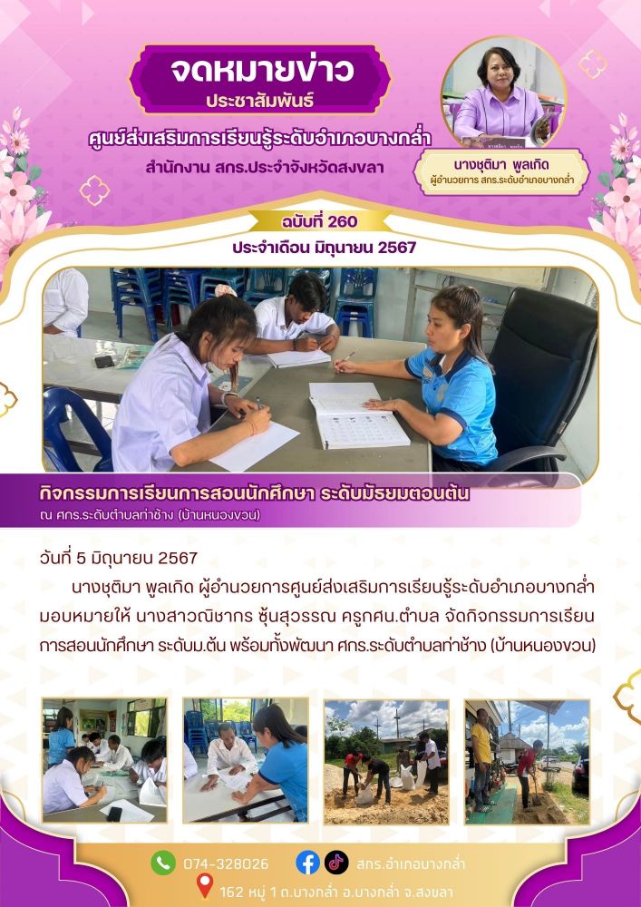 กิจกรรมการเรียนการสอนนักศึกษา ระดับม.ต้น พร้อมทั้งพัฒนา ศกร.ระดับตำบลท่าช้าง (บ้านหนองขวน)