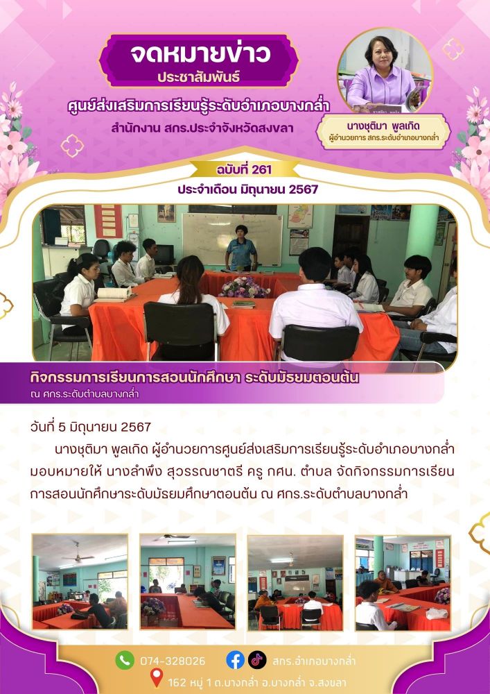 กิจกรรมการเรียนการสอนนักศึกษาระดับมัธยมศึกษาตอนต้น ณ ศกร.ระดับตำบลบางกล่ำ