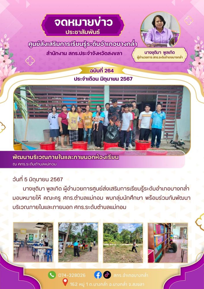 พบกลุ่มนักศึกษา พร้อมร่วมกันพัฒนาบริเวณภายในและภายนอก ศกร.ระดับตำบลแม่ทอม