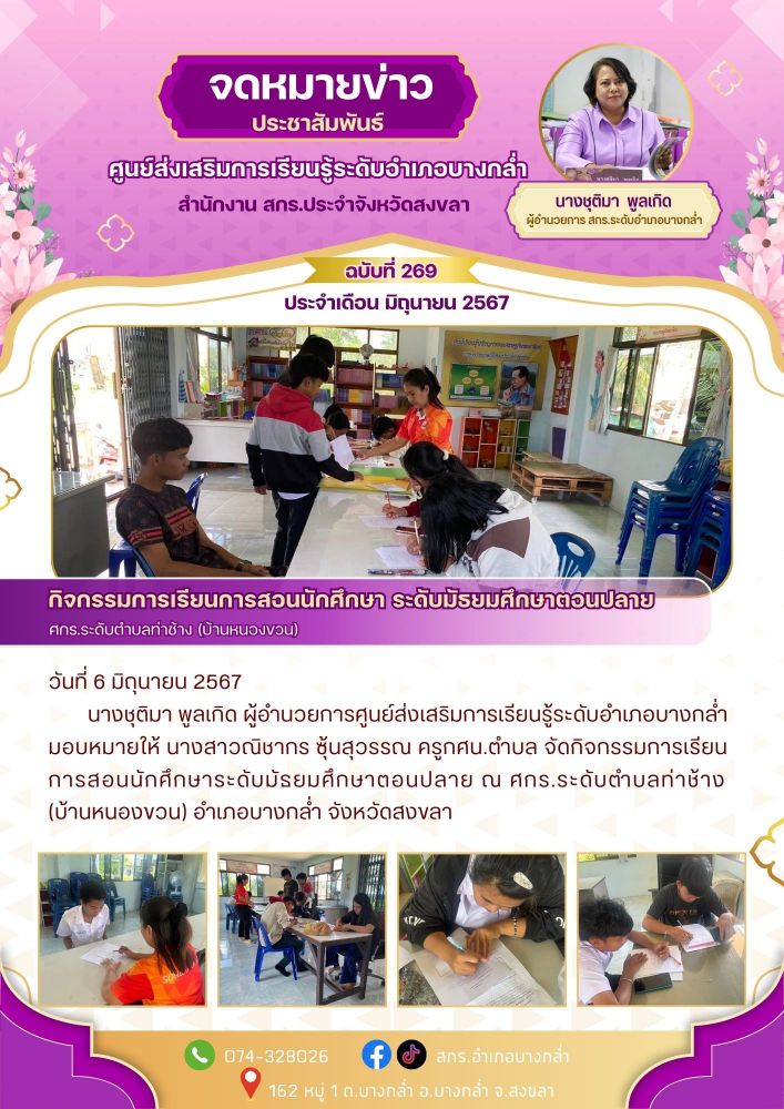 กิจกรรมการเรียนการสอนนักศึกษาระดับมัธยมศึกษาตอนปลาย ณ ศกร.ระดับตำบลท่าช้าง(บ้านหนองขวน)
