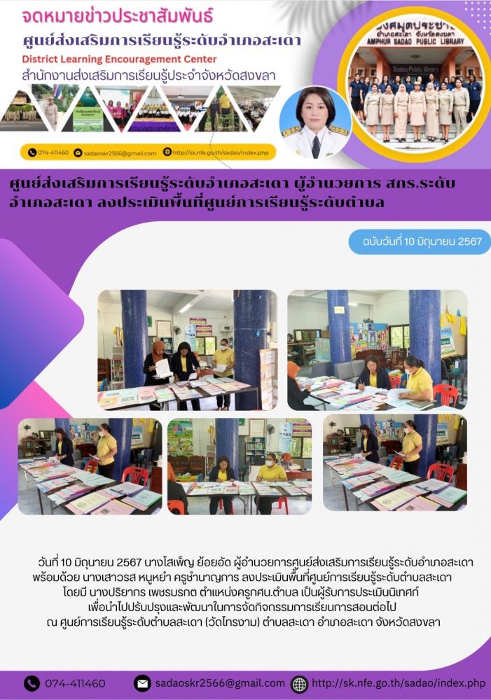 ศูนย์ส่งเสริมการเรียนรู้ระดับอำเภอสะเดา ผู้อำนวยการ สกร.ระดับอำเภอสะเดา ลงประเมินพื้นที่ศูนย์การเรียนรู้ระดับตำบล