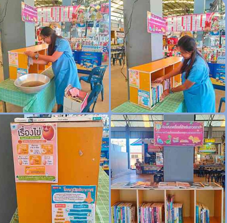 บรรณารักษ์จัดกิจกรรมห้องสมุดเคลื่อนที่สำหรับชาวตลาด โดยการนำหนังสือ สื่อสิ่งพิมพ์จัดมุมหนังสือและนำสื่อส่งเสริมการอ่านออนไลน์ QR Code มาเผยแพร่