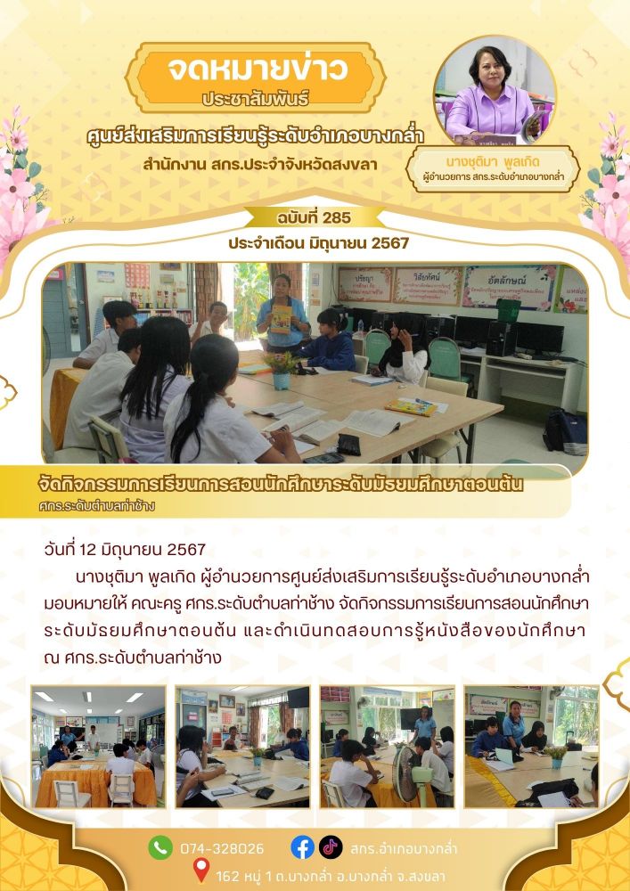จัดกิจกรรมการเรียนการสอนนักศึกษาระดับมัธยมศึกษาตอนต้น ศกร.ระดับตำบลท่าช้าง