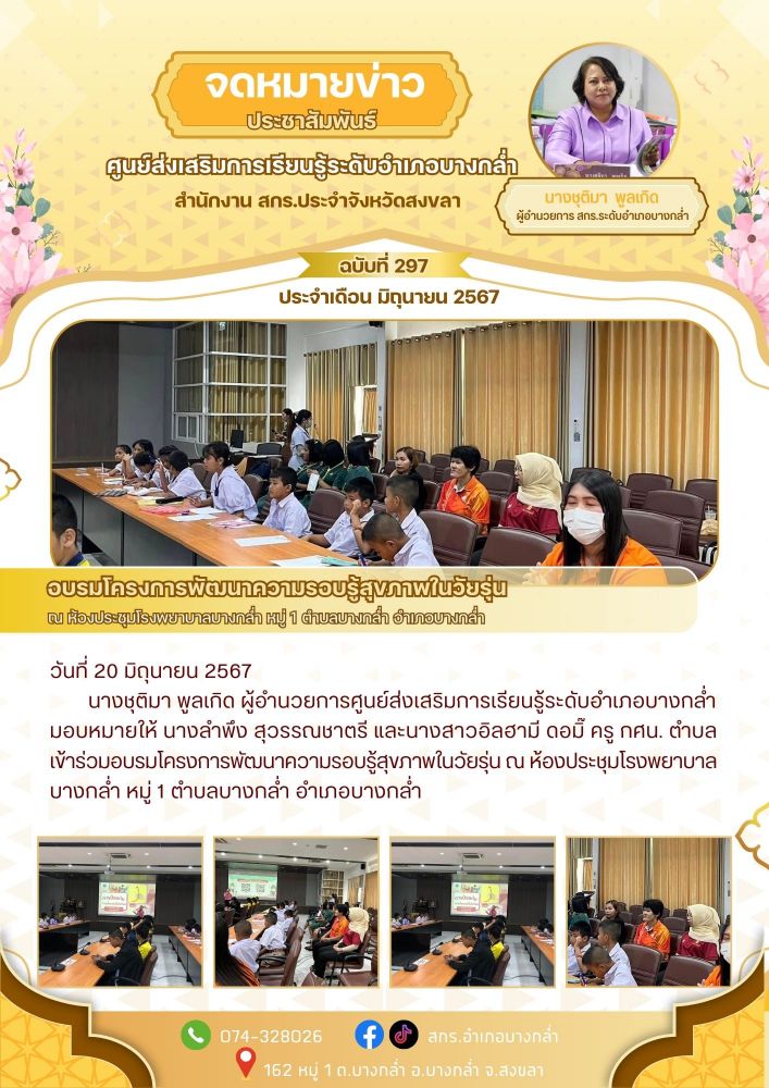 อบรมโครงการพัฒนาความรอบรู้สุขภาพในวัยรุ่น