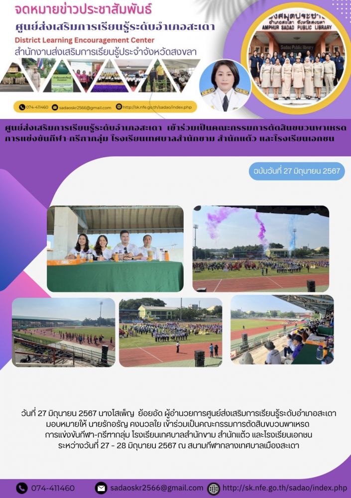 ศูนย์ส่งเสริมการเรียนรู้ระดับอำเภอสะเดา เข้าร่วมเป็นคณะกรรมการตัดสินขบวนพาเหรด การแข่งขันกีฬา-กรีฑากลุ่ม โรงเรียนเทศบาลสำนักขาม สำนักแต้ว และโรงเรียนเอกชน