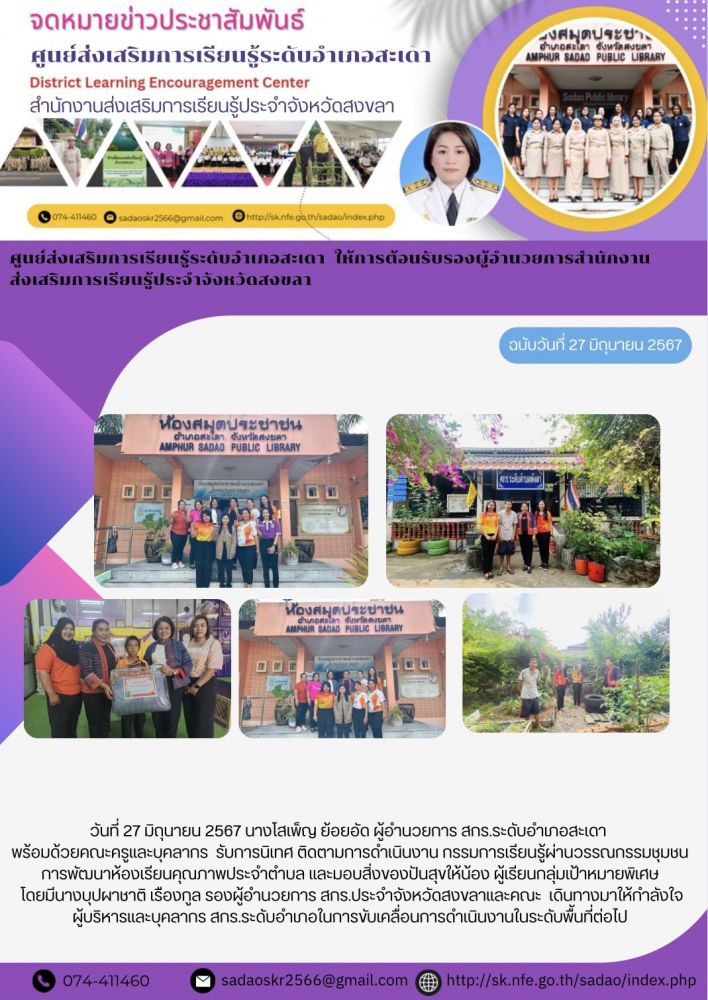 ศูนย์ส่งเสริมการเรียนรู้ระดับอำเภอสะเดา ให้การต้อนรับรองผู้อำนวยการสำนักงาน ส่งเสริมการเรียนรู้ประจำจังหวัดสงขลา