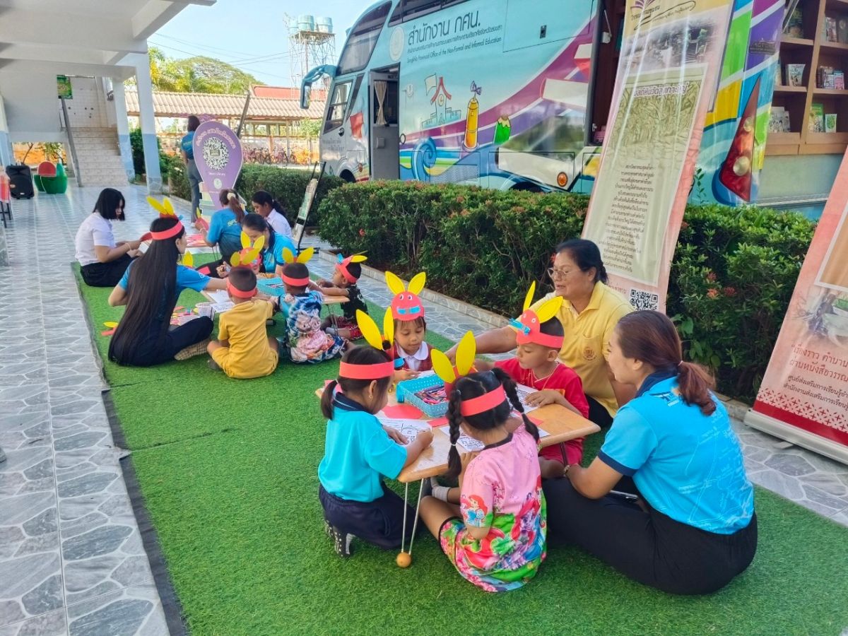 จัดการศึกษาตามอัธยาศัย โดยมีกิจกรรมส่งเสริมการอ่านรถโมบาย กิจกรรมประดิษฐ์หมวกกระต่ายแสนซน และกิจกรรมเรียนรู้วรรณกรรมชุมชนของอำเภอกระแสสินธุ์