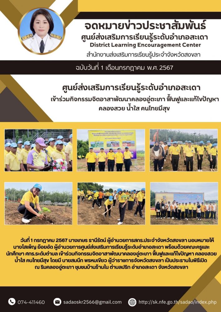 ศูนย์ส่งเสริมการเรียนรู้ระดับอำเภอสะเดา เข้าร่วมกิจกรรมจิตอาสาพัฒนาคลองอู่ตะเภา ฟื้นฟูและแก้ไขปัญหา คลองสวย น้ำใส คนไทยมีสุข