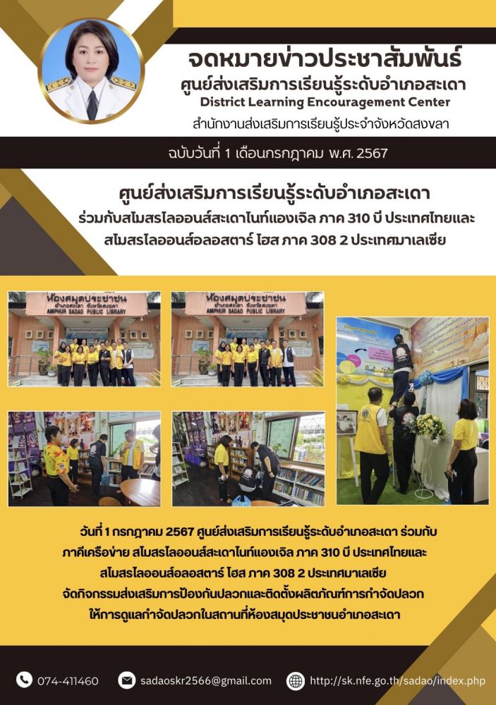 ศูนย์ส่งเสริมการเรียนรู้ระดับอำเภอสะเดา ร่วมกับสโมสรไลออนส์สะเดาไนท์แองเจิล ภาค 310 บี ประเทศไทยและ สโมสรไลออนส์อลอสตาร์ โฮส ภาค 308 2 ประเทศมาเลเซีย