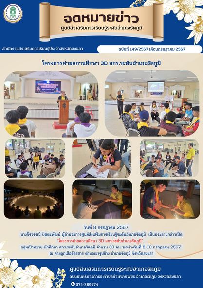 ศูนย์ส่งเสริมการเรียนรู้ระดับอำเภอรัตภูมิ ดำเนินการจัดโครงการค่ายสถานศึกษา 3D สกร.ระดับอำเภอรัตภูมิ