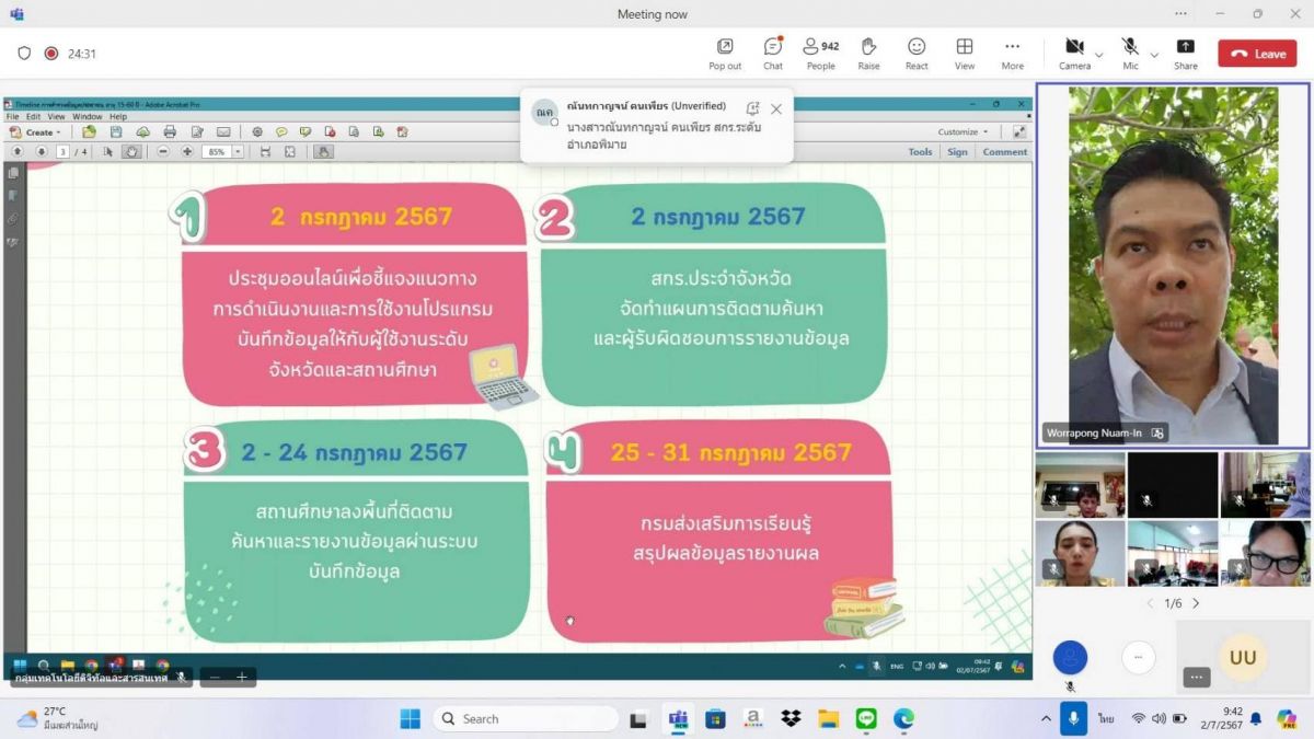 เข้าประชุมชี้แจงการสำรวจข้อมูลประชาชน อายุ 15-60 ปี ที่ยังไม่จบการศึกษาภาคบังคับ ผ่านโปรแกรม Microsoft Teams
