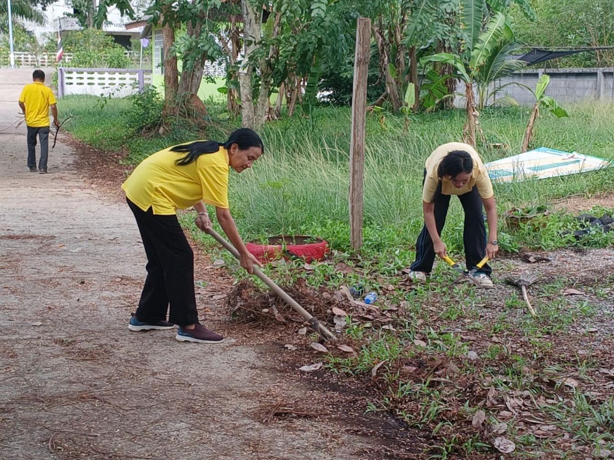 นางชุติมา พูลเกิด ผู้อำนวยการศูนย์ส่งเสริมการเรียนรู้ระดับอำเภอบางกล่ำ พร้อมกับครูและบุคลากร ร่วมกันจิตอาสาพัฒนาทำความสะอาด