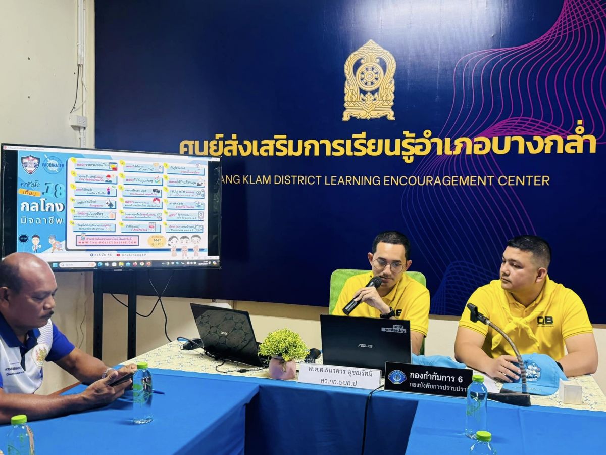 โดยมี พ.ต.ต.ธนาคาร อุชณรัศมี สว.กก.6บก.ป.เเละคณะ เป็นวิทยากร ณ ห้องประชุม สกร.ระดับอำเภอบางกล่ำ จังหวัดสงขลา