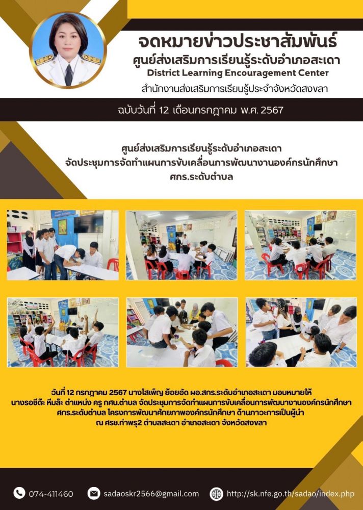 ศูนย์ส่งเสริมการเรียนรู้ระดับอำเภอสะเดา จัดประชุมการจัดทำแผนการขับเคลื่อนการพัฒนางานองค์กรนักศึกษา ศกร.ระดับตำบล