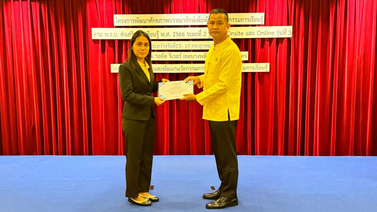 นางสุนิตย์ ไชยถาวร ผู้อำนวยการศูนย์ส่งเสริมการเรียนรู้ระดับอำเภอนาหม่อม มอบหมาย นางสาวสุภารัตน์ พรมชาติ บรรณารักษ์ปฏิบัติการ เข้าร่วมอบรมปฏิบัติการพัฒนาศักยภาพบรรณารักษ์ เพื่อพัฒนานวัตกรรมการเรียนรู้ ตาม พ.ร.บ. ส่งเสริมการเรียนรู้พ.ศ. 2566 ระยะที่ 2 รุ่นที่ 3 เพื่อให้บรรณารักษ์สามารถเป็นนักจัดการเรียนรู้ และจัดกิจกรรมการเรียนรู้ที่สอดคล้องกับ พ.ร.บ. ส่งเสริมการเรียนรู้พ.ศ. 2566