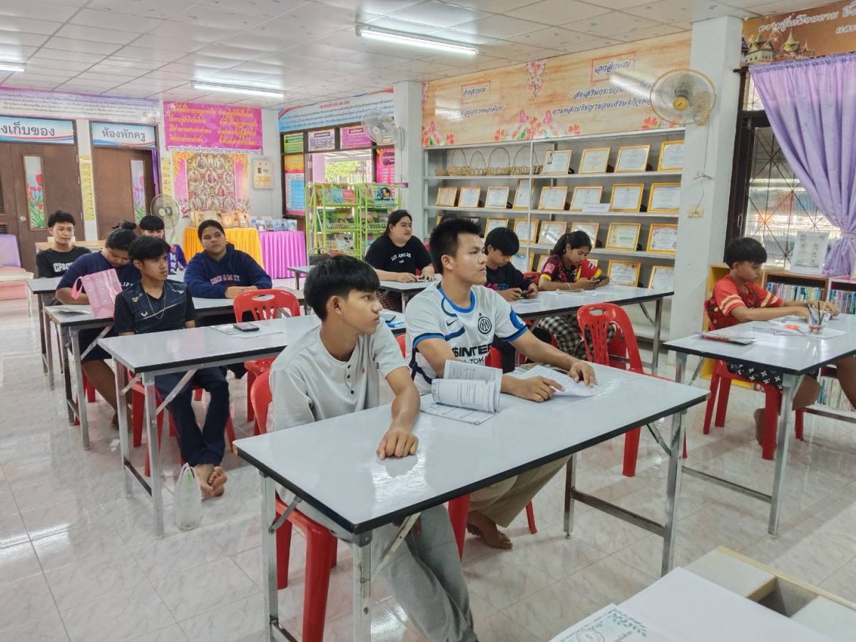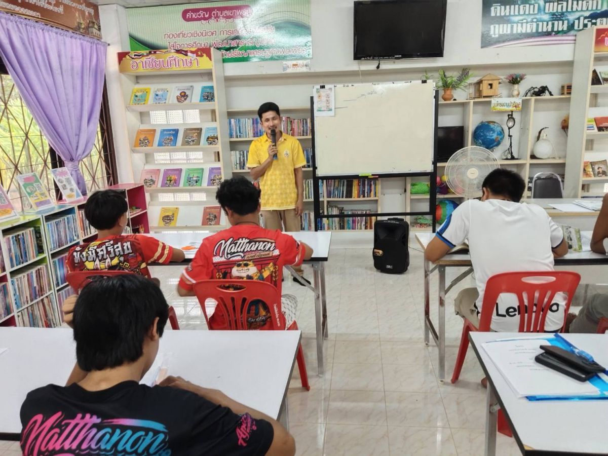 นายพุทธพร รัตนอุไร ครู กศน.ตำบล ดำเนินการจัดการเรียนการสอน นักศึกษาภาคเรียนที่ 1/2567 สอนในรายวิชาภาษาไทย เรื่องการเขียนและการอ่านและสอดแทรกวรรณกรรมชุมชนอำเภอรัตภูมิ