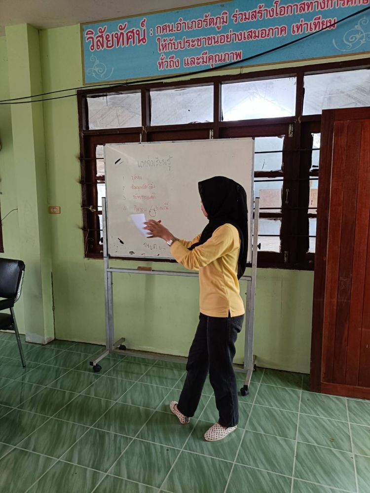 นางสาวซารียะ มะหลี ครู กศน.ตำบล ดำเนินการจัดการเรียนการสอน นักศึกษาภาคเรียนที่ 1/2567 สอนในวิชาทักษะการเรียนรู้ เรื่อง แหล่งเรียนรู้