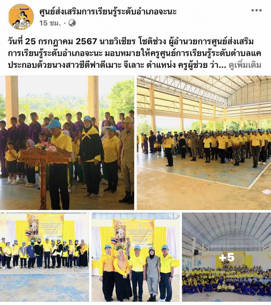 ศูนย์ สกร.ระดับอำเภอจะนะ เข้าร่วมกิจกรรมชาวประชาร่วมใจถวายความจงรักภักดีต่อพระมหากษัตริย์ ณ สนามกีฬา และคลองหลา หมู่ที่ 5 บ้านทุ่งครก ตำบลแค อำเภอจะนะ จังหวัดสงขลา โดยกิจกรรมเริ่มด้วยการพิธีถวายความเคารพพระบรมฉายาลักษณ์และถวายสัตย์ปฏิญาณ