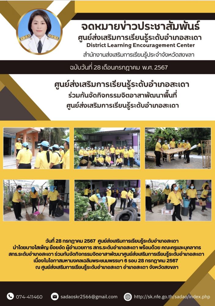 ศูนย์ส่งเสริมการเรียนรู้ระดับอำเภอสะเดา ร่วมกันจัดกิจกรรมจิตอาสาพัฒนาพื้นที่ ศูนย์ส่งเสริมการเรียนรู้ระดับอำเภอสะเดา