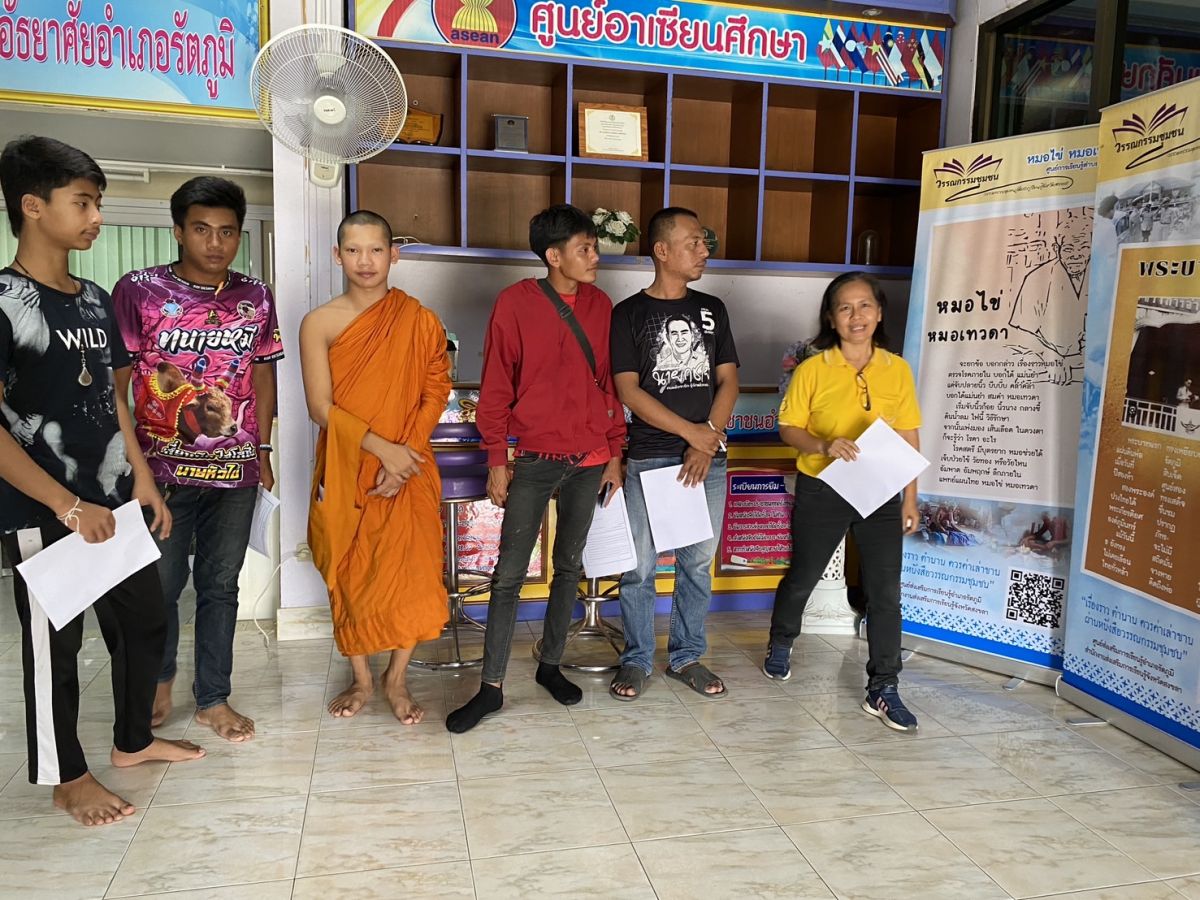 นางกัลยา ศิริรักษ์ ครูอาสาฯ ดำเนินการจัดการเรียนการสอนนักศึกษากลุ่มศูนย์การเรียนรู้วัดเกาะบก ศึกษาเรียนรู้รายวิชาภาษาไทย เรื่องวรรณกรรมท้องถิ่นอำเภอรัตภูมิ