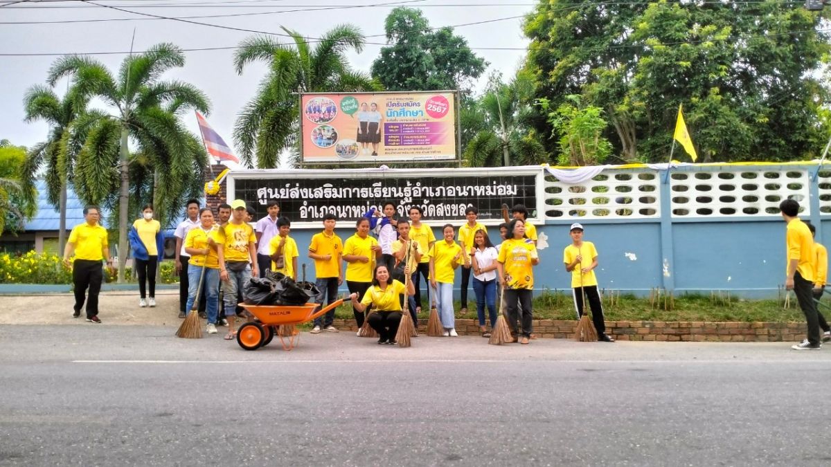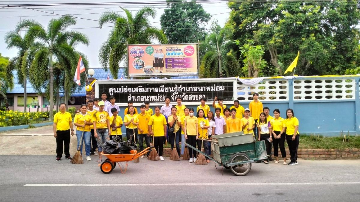 นางสุนิตย์ ไชยถาวร ผู้อำนวยการศูนย์ส่งเสริมการเรียนรู้ระดับอำเภอนาหม่อมพร้อมด้วย คณะครู และบุคลากร ศูนย์ส่งเสริมการเรียนรู้ระดับอำเภอนาหม่อม จัดกิจกรรม โครงการ สกร.รวมใจภักดิ์ จิตอาสา "เราทำความดีด้วยหัวใจ" เนื่องในโอกาสวันเฉลิมพระชนมพรรษา พระบาทสมเด็จพระเจ้าอยู่หัว 28 กรกฎาคม 2567 เพื่อร่วมแสดงความจงรักภักดีและสำนึกในพระมหากรุณาธิคุณที่ได้ทรงปฏิบัติพระราชกรณียกิจนานัปการ เพื่อประโยชน์สุขของพสกนิกรชาวไทย
