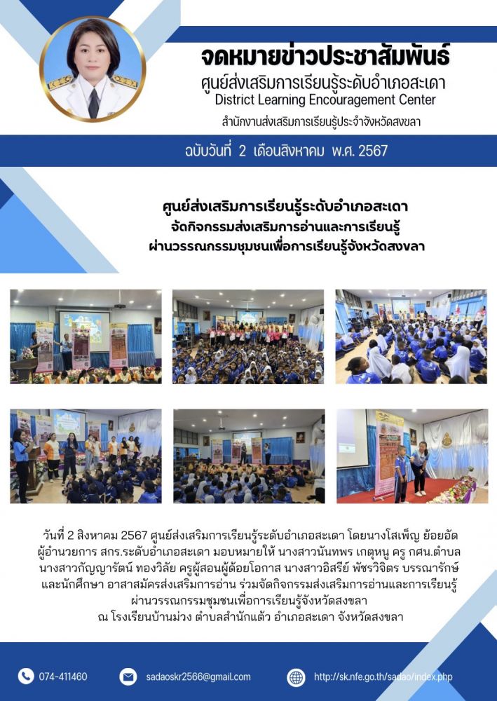 ศูนย์ส่งเสริมการเรียนรู้ระดับอำเภอสะเดา จัดกิจกรรมส่งเสริมการอ่านและการเรียนรู้ ผ่านวรรณกรรมชุมชนเพื่อการเรียนรู้จังหวัดสงขลา