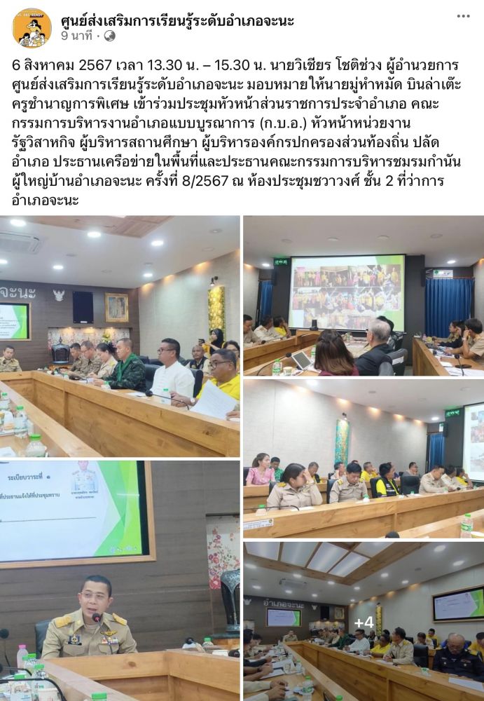 เข้าร่วมประชุมหัวหน้าส่วนราชการประจำอำเภอ คณะกรรมการบริหารงานอำเภอแบบบูรณาการ (ก.บ.อ.) หัวหน้าหน่วยงานรัฐวิสาหกิจ ผู้บริหารสถานศึกษา ผู้บริหารองค์กรปกครองส่วนท้องถิ่น