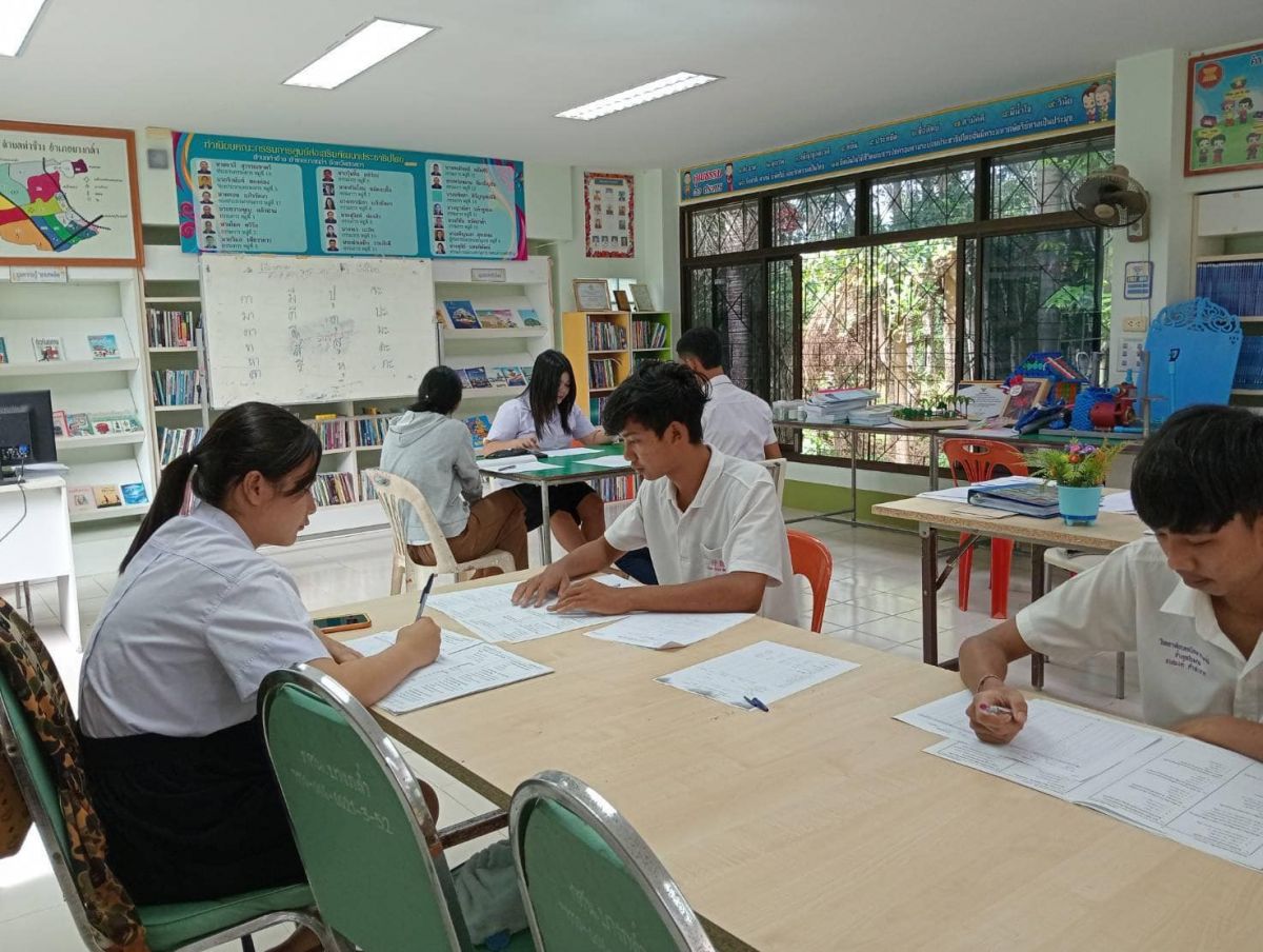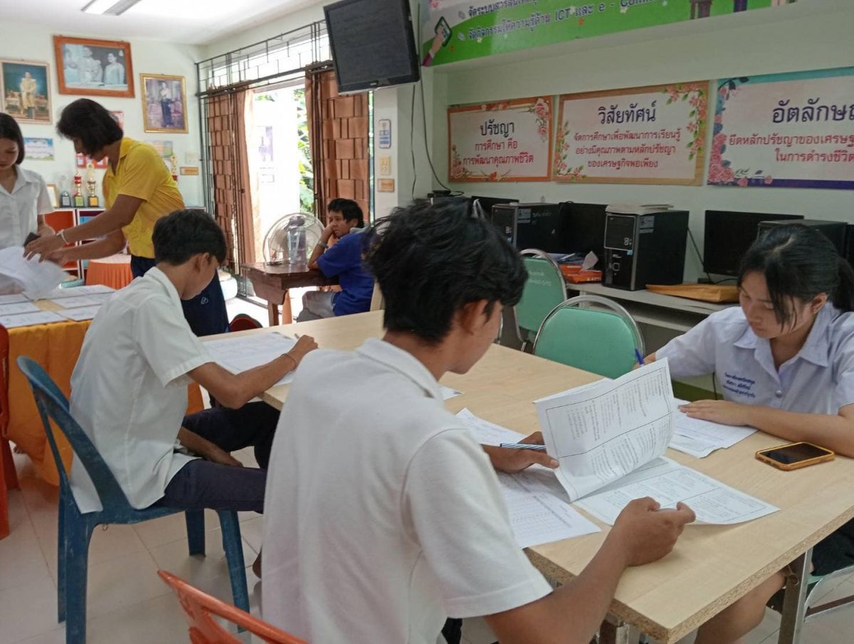 และนางสาวลลิตา สุวรรณรัตน์ ครู ศรช. ดำเนินการสอบวัดผลสัมฤทธิ์กลางภาคเรียนที่ 1 ปีการศึกษา 2567 หลักสูตรการศึกษานอกระบบระดับการศึกษา