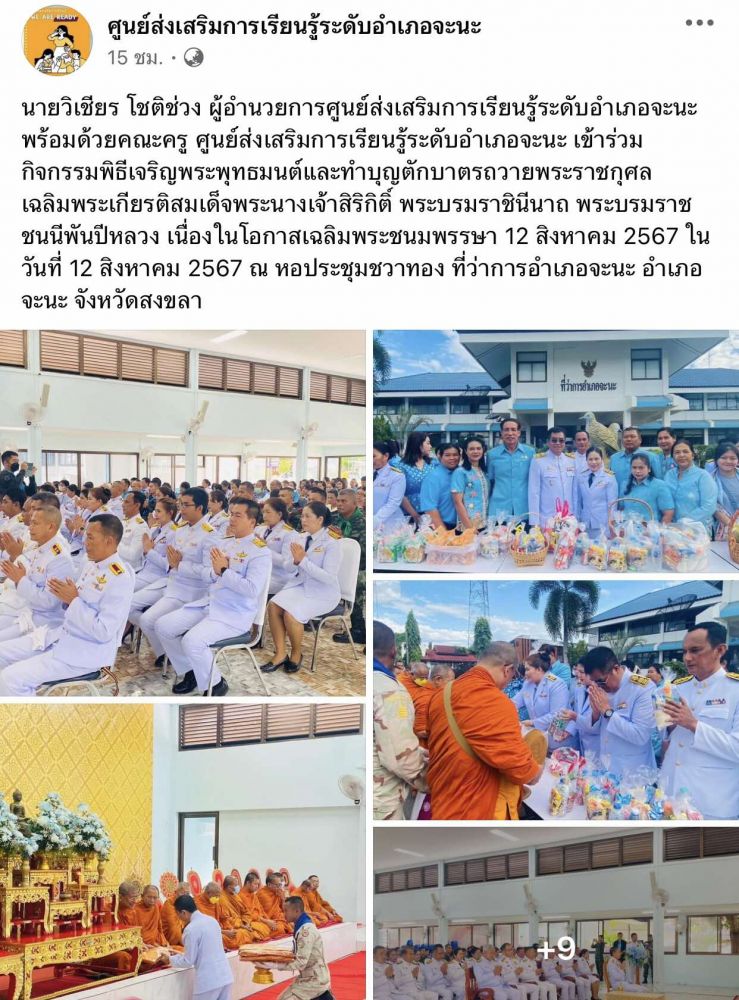 ศูนย์ สกร.ระดับอำเภอจะนะ กิจกรรมพิธีเจริญพระพุทธมนต์และทำบุญตักบาตรถวายพระราชกุศล เฉลิมพระเกียรติสมเด็จพระนางเจ้าสิริกิติ์ พระบรมราชินีนาถ พระบรมราชชนนีพันปีหลวง เนื่องในโอกาสเฉลิมพระชนมพรรษา 12 สิงหาคม 2567