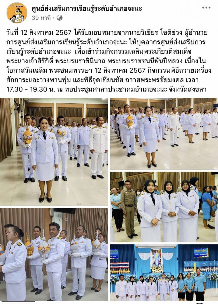 นางจีรวรรณ์ ปัตตะพัฒน์ ผู้อำนวยการศูนย์ส่งเสริมการเรียนรู้ระดับอำเภอจะนะ เข้าร่วมประชุมรับนโยบายและแนวทางการดำเนินงานส่งเสริมการเรียนรู้ ประจำปีงบประมาณ พ.ศ. 2569 พร้อมทั้งคณะบุคลากรสำนักงานส่งเสริมการเรียนรู้ประจำจังหวัดสงขลา ร่วมรับฟังนโยบายและแนวทางการ 7 / ต.ค. / 2568