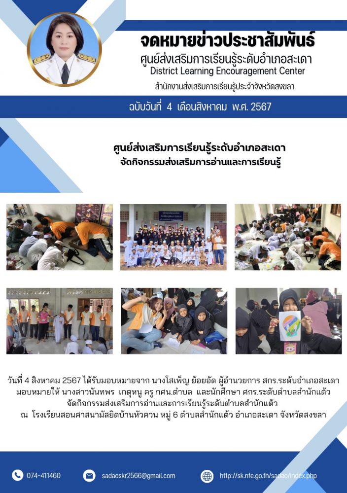 ศูนย์ส่งเสริมการเรียนรู้ระดับอำเภอสะเดา จัดกิจกรรมส่งเสริมการอ่านและการเรียนรู้
