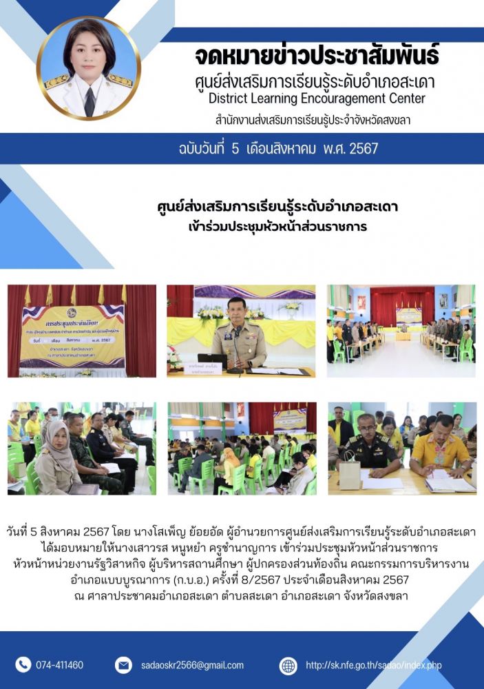 ศูนย์ส่งเสริมการเรียนรู้ระดับอำเภอสะเดา เข้าร่วมประชุมหัวหน้าส่วนราชการ