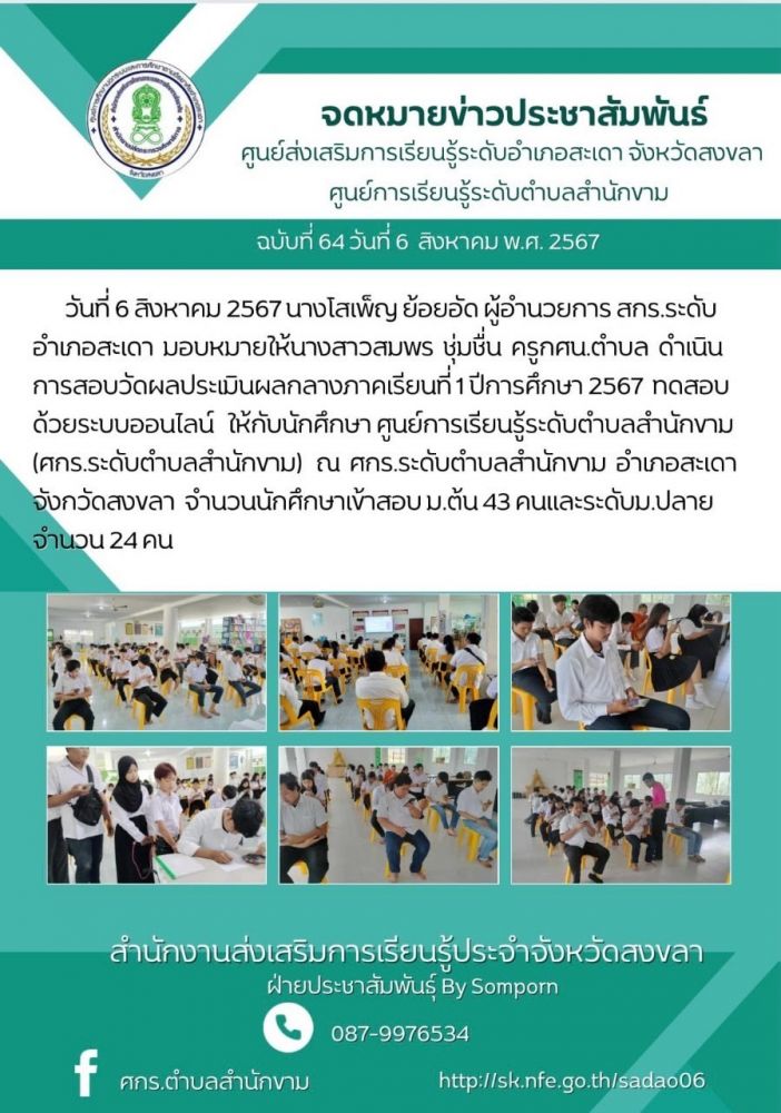 ศูนย์ส่งเสริมการเรียนรู้ระดับอำเภอสะเดา สอบวัดผลประเมินผลกลางภาคเรียนที่ 1 ปีการศึกษา 2567