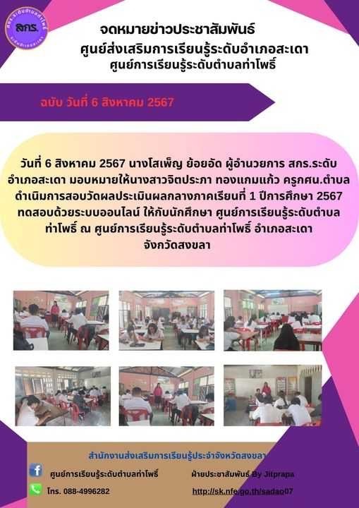 ศูนย์ส่งเสริมการเรียนรู้ระดับอำเภอสะเดา สอบวัดผลประเมินผลกลางภาคเรียนที่ 1 ปีการศึกษา 2567
