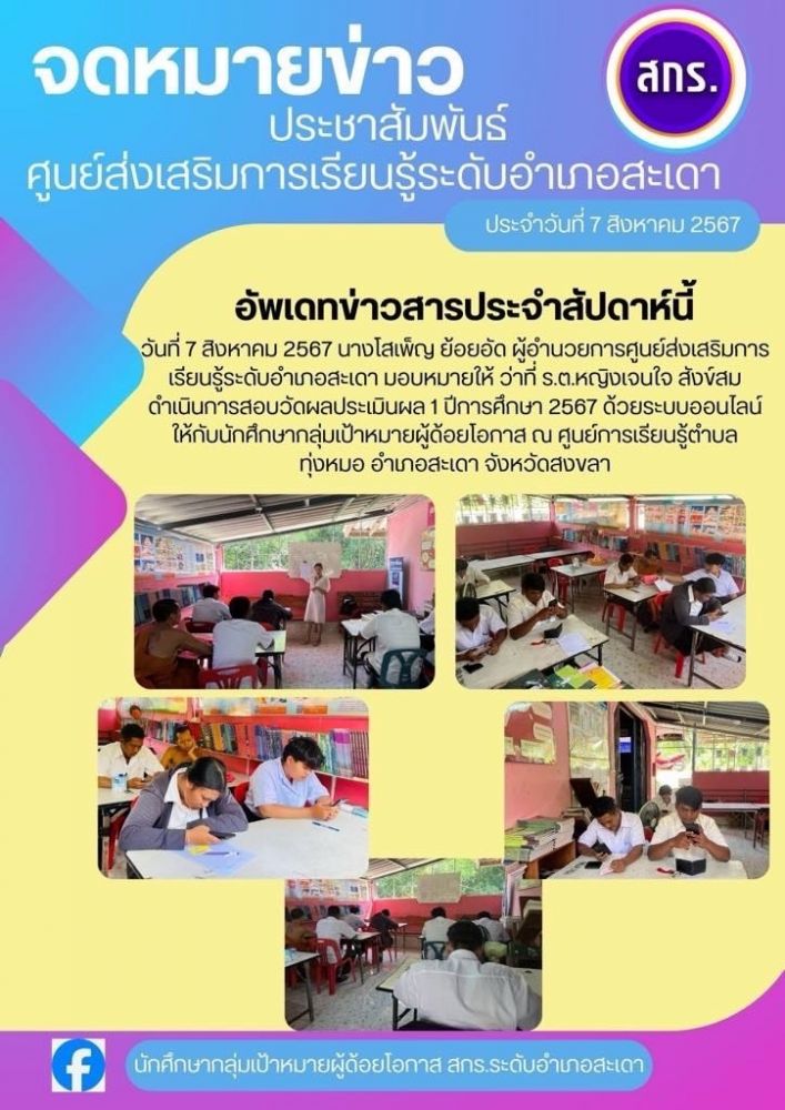 ศูนย์ส่งเสริมการเรียนรู้ระดับอำเภอสะเดา สอบวัดผลประเมินผลกลางภาคเรียนที่ 1 ปีการศึกษา 2567