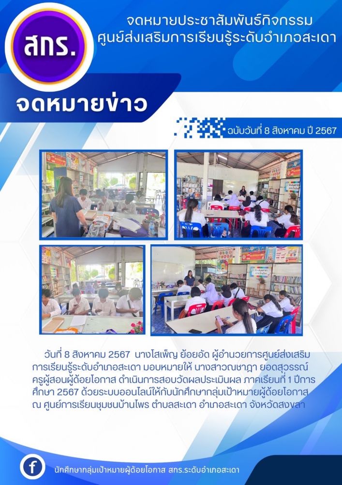ศูนย์ส่งเสริมการเรียนรู้ระดับอำเภอสะเดา สอบวัดผลประเมินผลกลางภาคเรียนที่ 1 ปีการศึกษา 2567