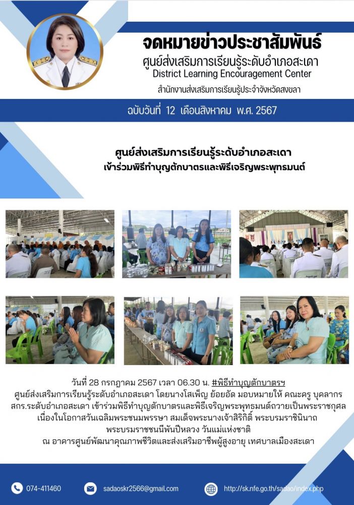 ศูนย์ส่งเสริมการเรียนรู้ระดับอำเภอสะเดา เข้าร่วมพิธีทำบุญตักบาตรและพิธีเจริญพระพุทธมนต์