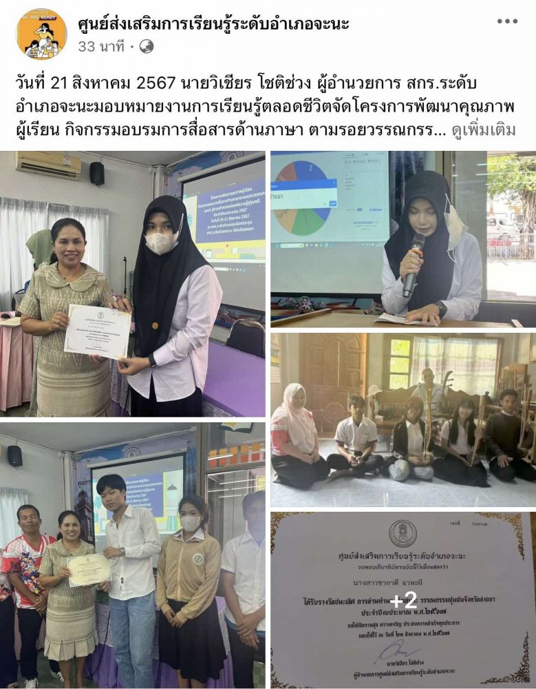 การปวดกวดกิจกกรมโครงการพัฒนาคุณภาพผู้เรียน กิจกรรมอบรมการสื่อสารด้านภาษา ตามรอยวรรณกรรมชุมชน สู่การสร้างสรรค์องค์ความรู้คู่ชุมชน ณ ห้องประชุม สกร.ระดับอำเภอจะนะ