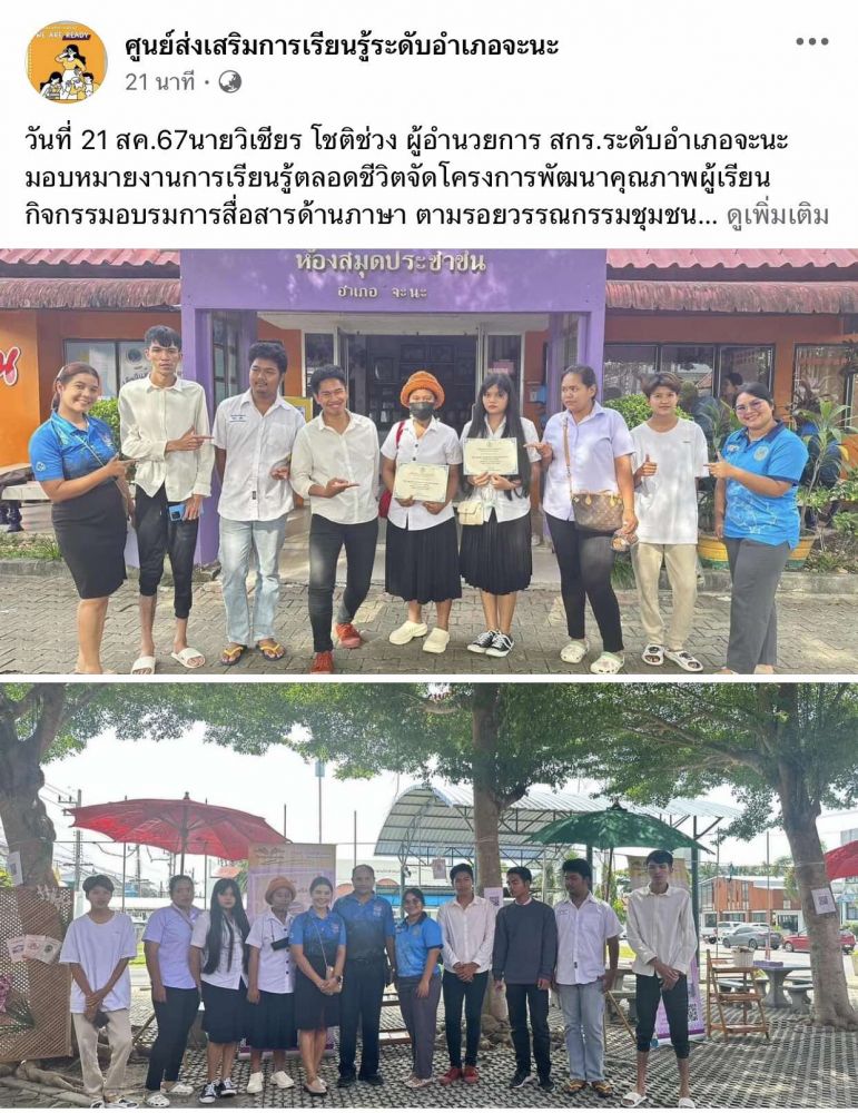 กิจกรรมการประกวดโครงการพัฒนาคุณภาพผู้เรียน กิจกรรมอบรมการสื่อสารด้านภาษา ตามรอยวรรณกรรมชุมชน สู่การสร้างสรรค์องค์ความรู้คู่ชุมชน ณ ห้องประชุม สกร.ระดับอำเภอจะนะ