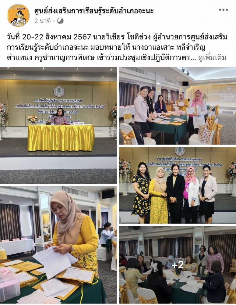 นางจีรวรรณ์ ปัตตะพัฒน์ ผู้อำนวยการศูนย์ส่งเสริมการเรียนรู้ระดับอำเภอจะนะ เข้าร่วมประชุมรับนโยบายและแนวทางการดำเนินงานส่งเสริมการเรียนรู้ ประจำปีงบประมาณ พ.ศ. 2569 พร้อมทั้งคณะบุคลากรสำนักงานส่งเสริมการเรียนรู้ประจำจังหวัดสงขลา ร่วมรับฟังนโยบายและแนวทางการ 7 / ต.ค. / 2568