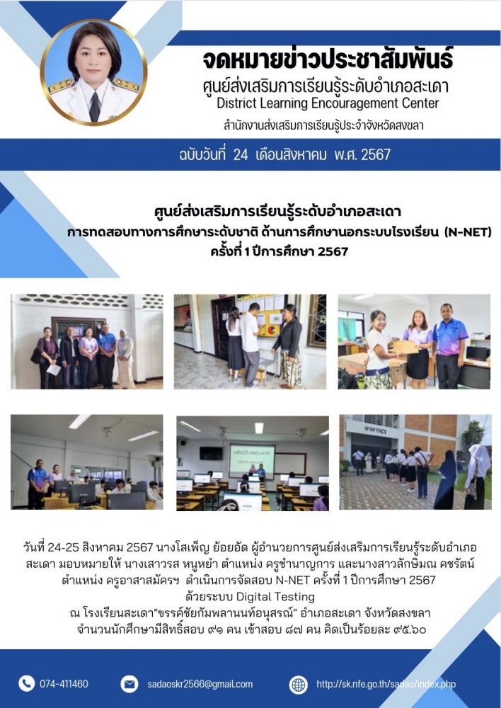 ศูนย์ส่งเสริมการเรียนรู้ระดับอำเภอสะเดา การทดสอบทางการศึกษาระดับชาติ ด้านการศึกษานอกระบบโรงเรียน (N-NET) ครั้งที่ 1 ปีการศึกษา 2567