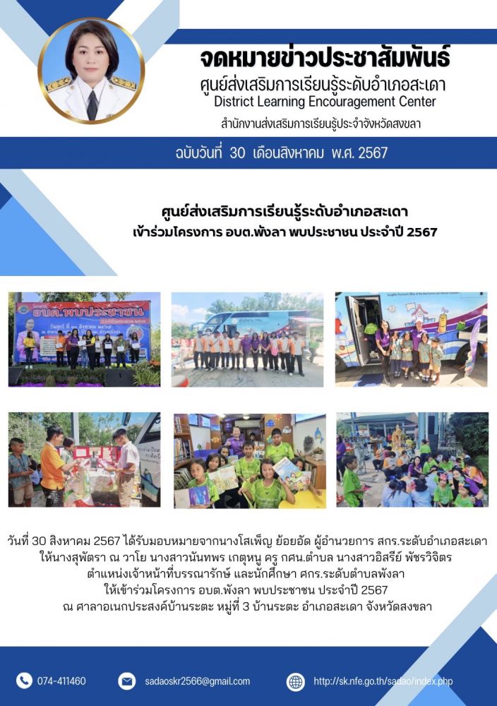 ศูนย์ส่งเสริมการเรียนรู้ระดับอำเภอสะเดา เข้าร่วมโครงการ อบต.พังลา พบประชาชน ประจำปี 2567